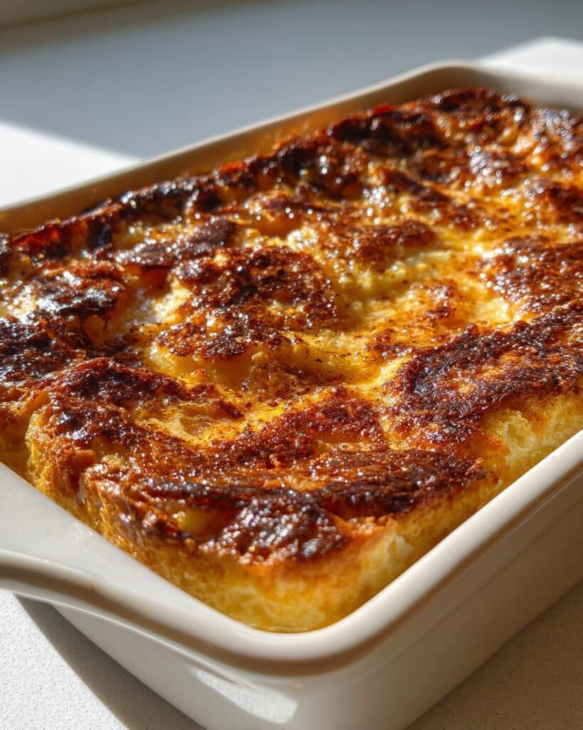 Savory Twist: Skip the sugar and spices, then layer in grated cheddar and cooked bacon or sausage. Use sourdough bread and add a pinch of garlic powder to the egg mixture. Top with extra cheese during the last 10 minutes of baking – perfect for brunch with a side of hot sauce.